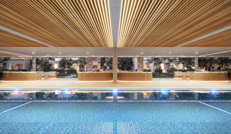 Central to the development is a serene residents’ garden by Site Image Landscape Architects, complete with cabana-style seating and a magnesium pool, fostering relaxation and community connection.